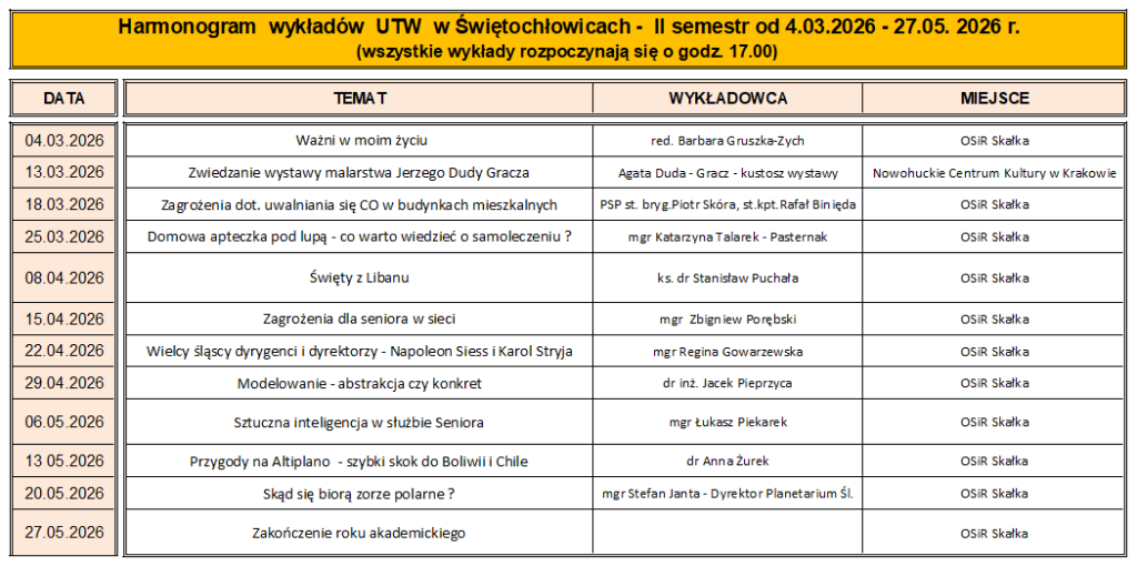 Wykłady Harmonogram wykładów II semestru roku akademickiego 2025/2026 kliknij aby pobrać harmonogram w PDF